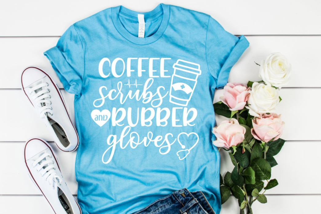 Coffee, Scrubs, and Rubber Gloves that's what nurses are made of. Priceless Dreams Designs have the perfect tee for you. Grab one for the nurse or nursing student or CNA in your life today!