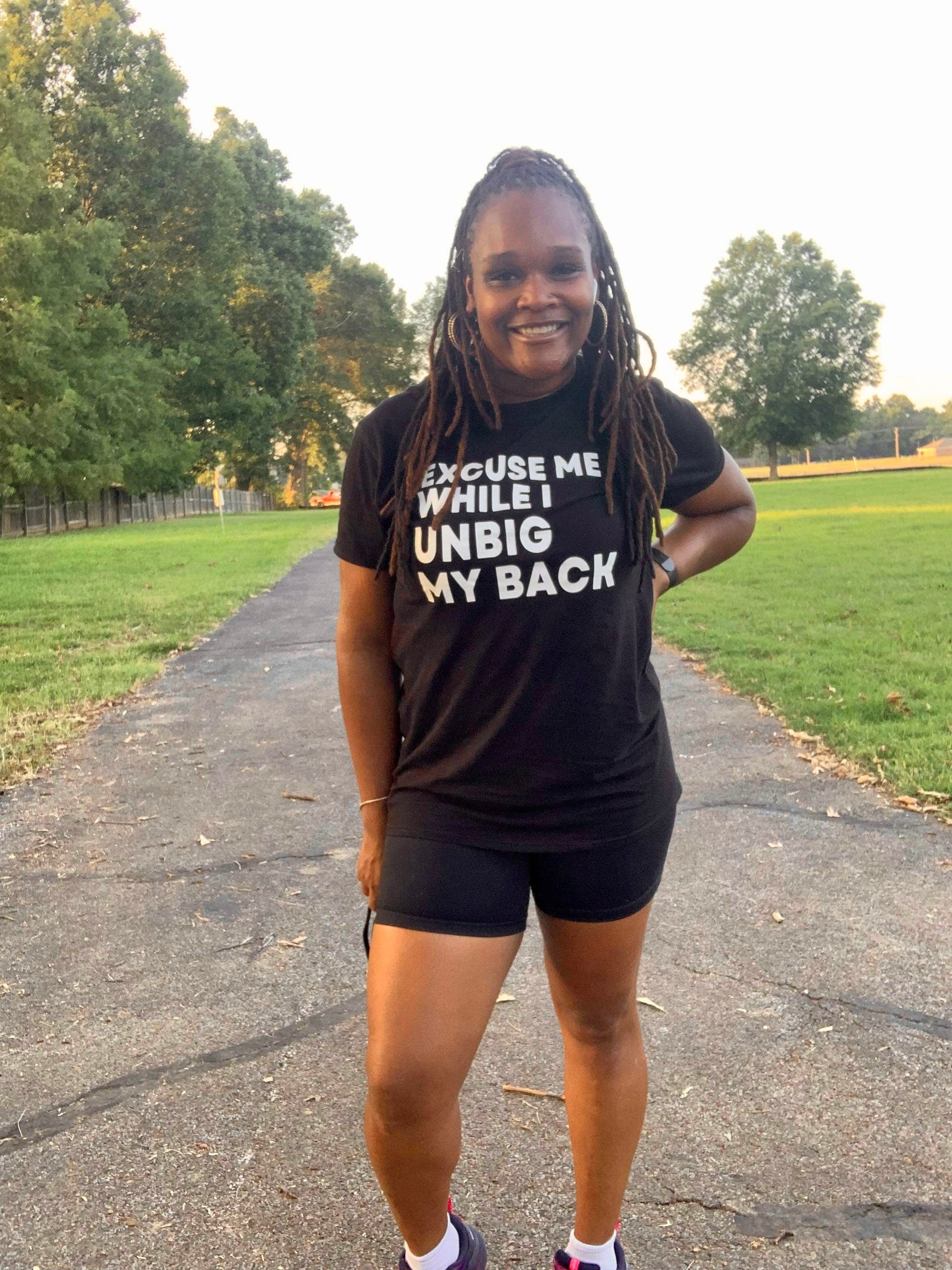 Unveiling our "Unbig My Back" tee, a perfect blend of style and statement for every fitness enthusiast out there. Crafted in rich black, this t-shirt boasts bold white lettering that resonates with the journey of transformation. Whether you're hitting the gym, going for a run, or embracing yoga, let this shirt be a testament to your dedication towards a smaller, sexier, and healthier version of yourself. Every time you wear it, be reminded of your goals and the powerful steps you're taking to achieve them. It's not just a t-shirt; it's your fitness mantra. Embrace the journey and let the world know you're on a mission to "Unbig" your back!